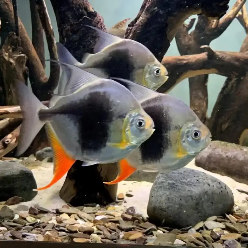 Schooling: They are social fish that need to be kept in groups of 5 or more. Due to their larger size and boisterous swimming style, they are more confident than the smaller common Silver Dollars.