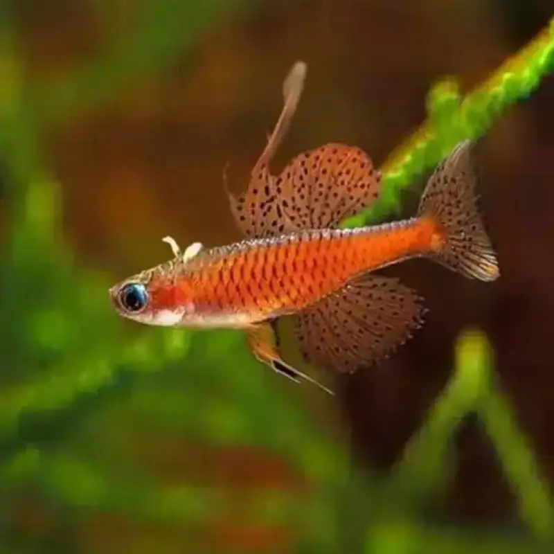 Scientific Name: Pseudomugil luminatus (often sold as Pseudomugil paskai or “Red Neon” in the hobby) Common Names: Red Neon Blue-eye, Paskai’s Blue-eye, Red Neon Rainbowfish Origin: New Guinea (specifically Papua)